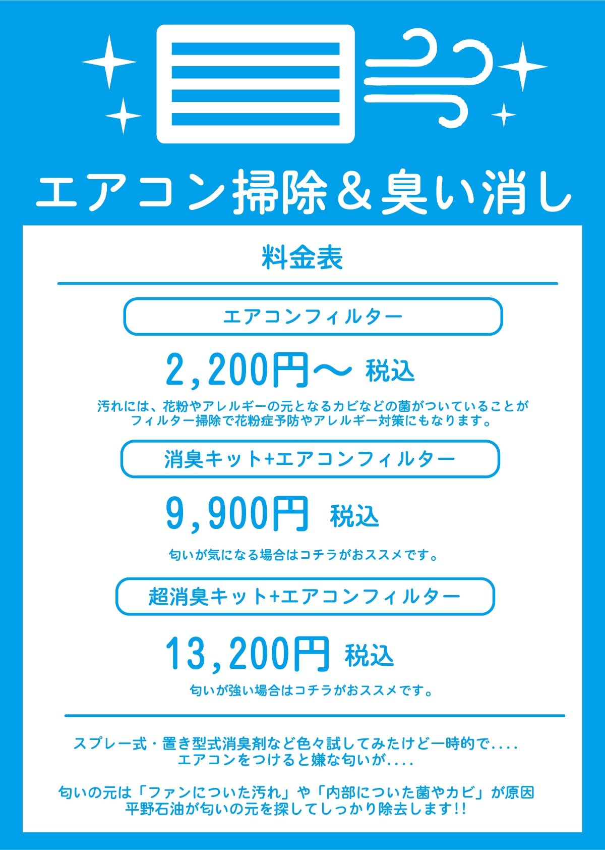 エアコン洗浄・臭い消し