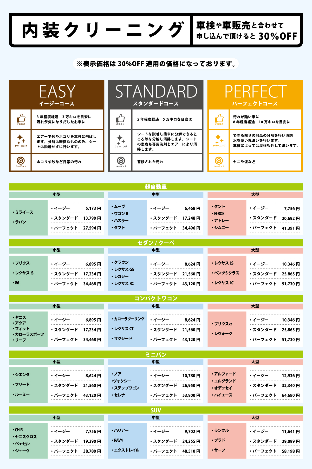 内装クリーニング30%OFF